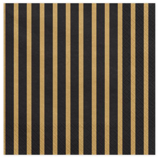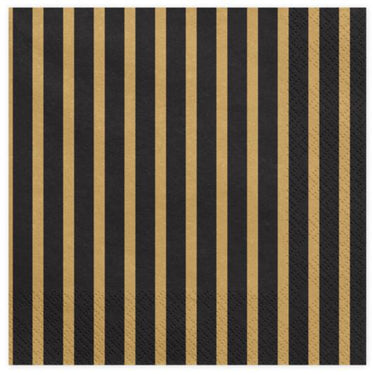Striped napkins, black and gold, 33 × 33 cm, 20 pcs/pack