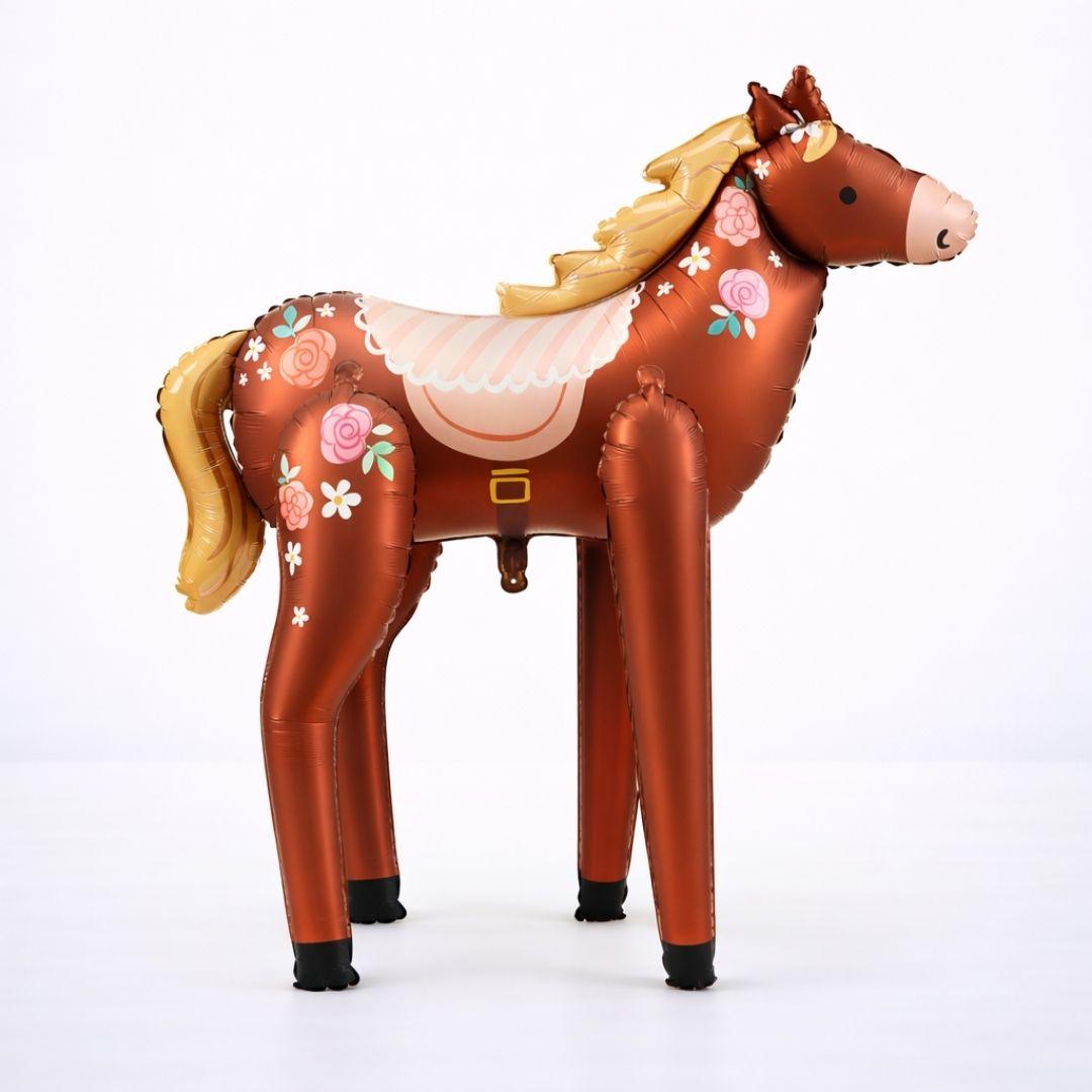 The large horse-shaped foil ball is an impressive decoration for horse-themed parties and children's birthdays. The multi-coloured balloon stays upright when inflated with air and is a great eye-catcher in the party room.