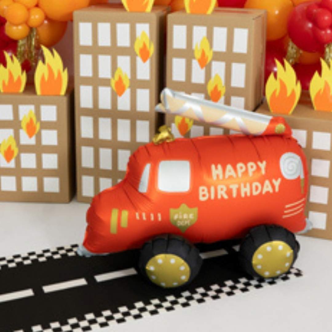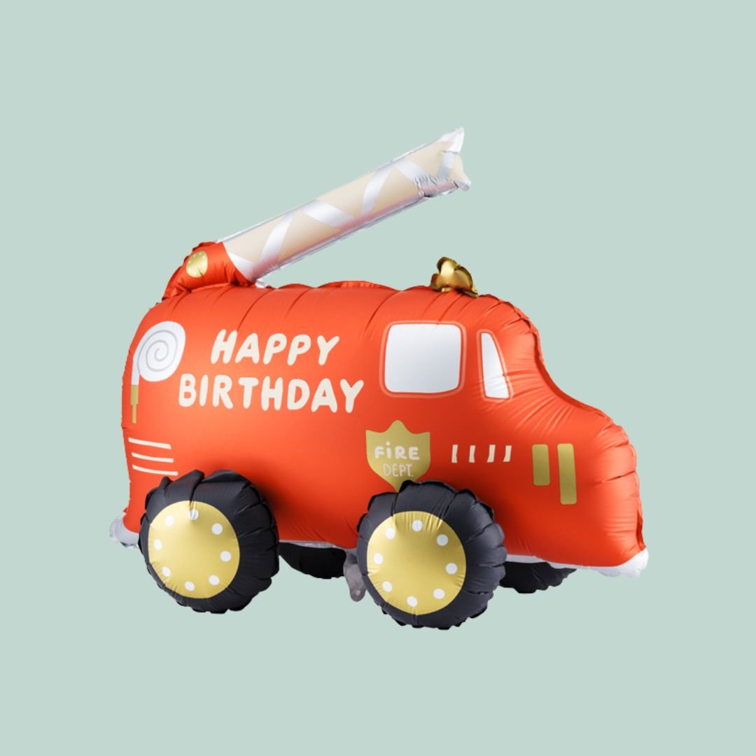 A spectacular standing foil ball in the shape of a fire engine. A colourful decoration, especially suitable for children's parties and birthdays.