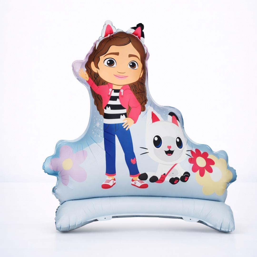 The adorable Gabby's Dollhouse themed standing foil balloon is a spectacular decoration for children's parties and birthdays. The multi-coloured balloon features familiar characters from the series and stays upright when inflated with air - an easy and fun decoration for children's party rooms.