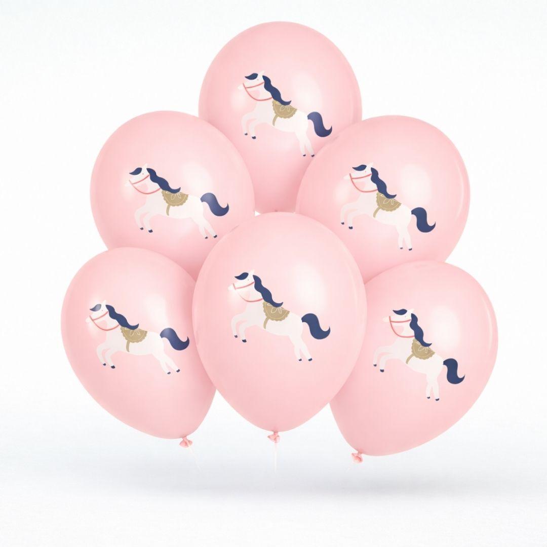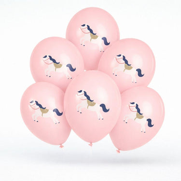 Cute horse themed balloons are perfect for horse themed parties. The pastel pink balloons are decorated with a multicoloured horse pattern.