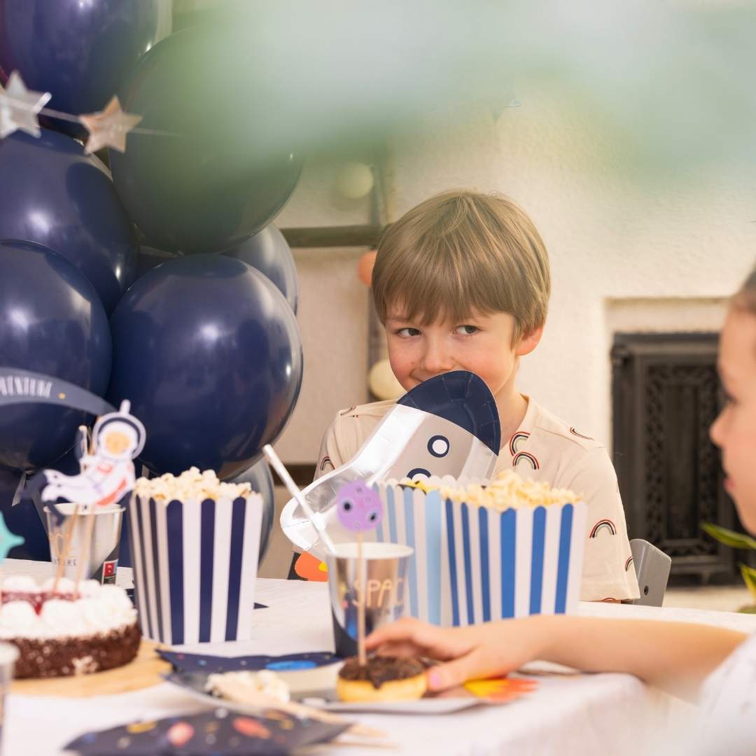 Space theme is one of the most popular children's birthday themes. Plates is easy combine with space-themed party decorations, such as mugs, napkins and balloons, so creates creates a cohesive whole.