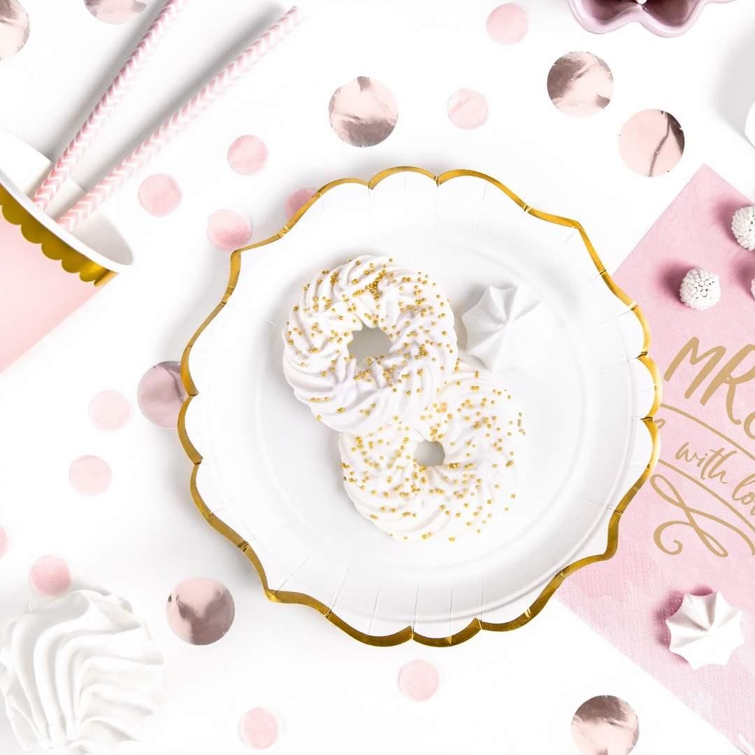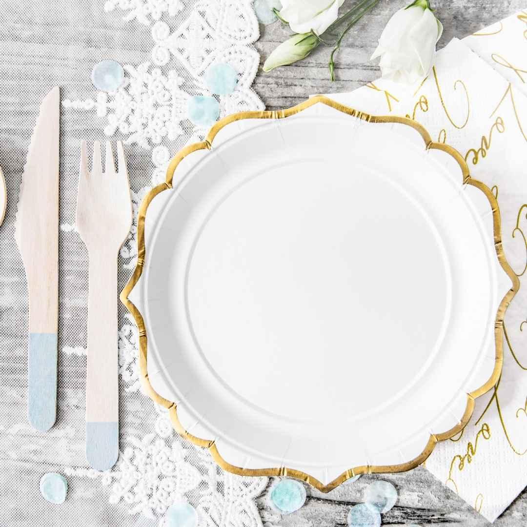Beautiful white paper plates with gold rims add a stylish and festive touch to your party table. The plates are perfect for all kinds of celebrations, such as birthdays, christenings, confirmation parties, baby showers, graduations, and other festive occasions.