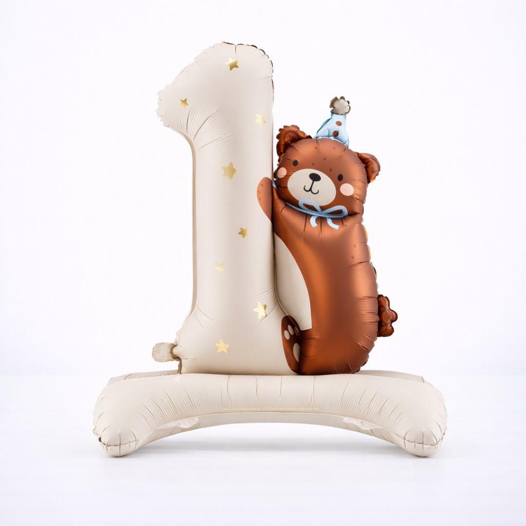 Foil ball number "1" teddy bear, 81 × 72 cm