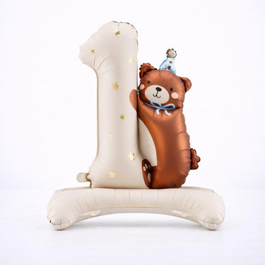 The adorable number "1" foil ball with a teddy bear is the perfect decoration for your little hero's first birthday party. Soft shades and a cute bear make it an adorable eye-catcher at the party.