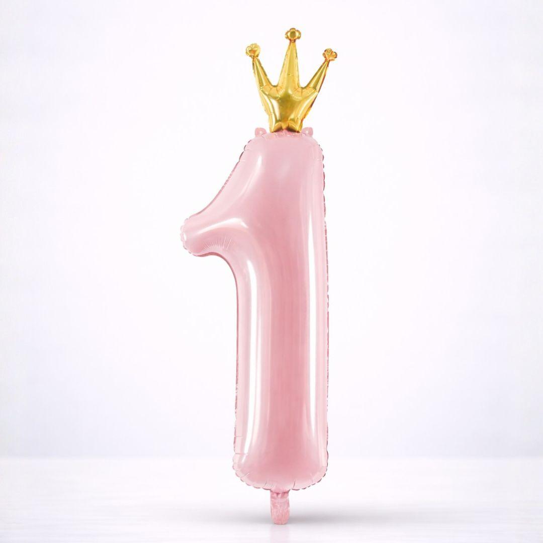 Cute pink number ball for a small child's 1 year birthday. The ball is crowned with a golden crown.