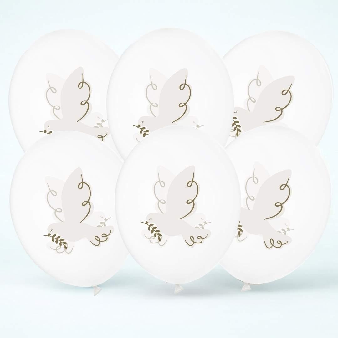 Balloon set - dove & crystal clear 30 cm (6 pcs)