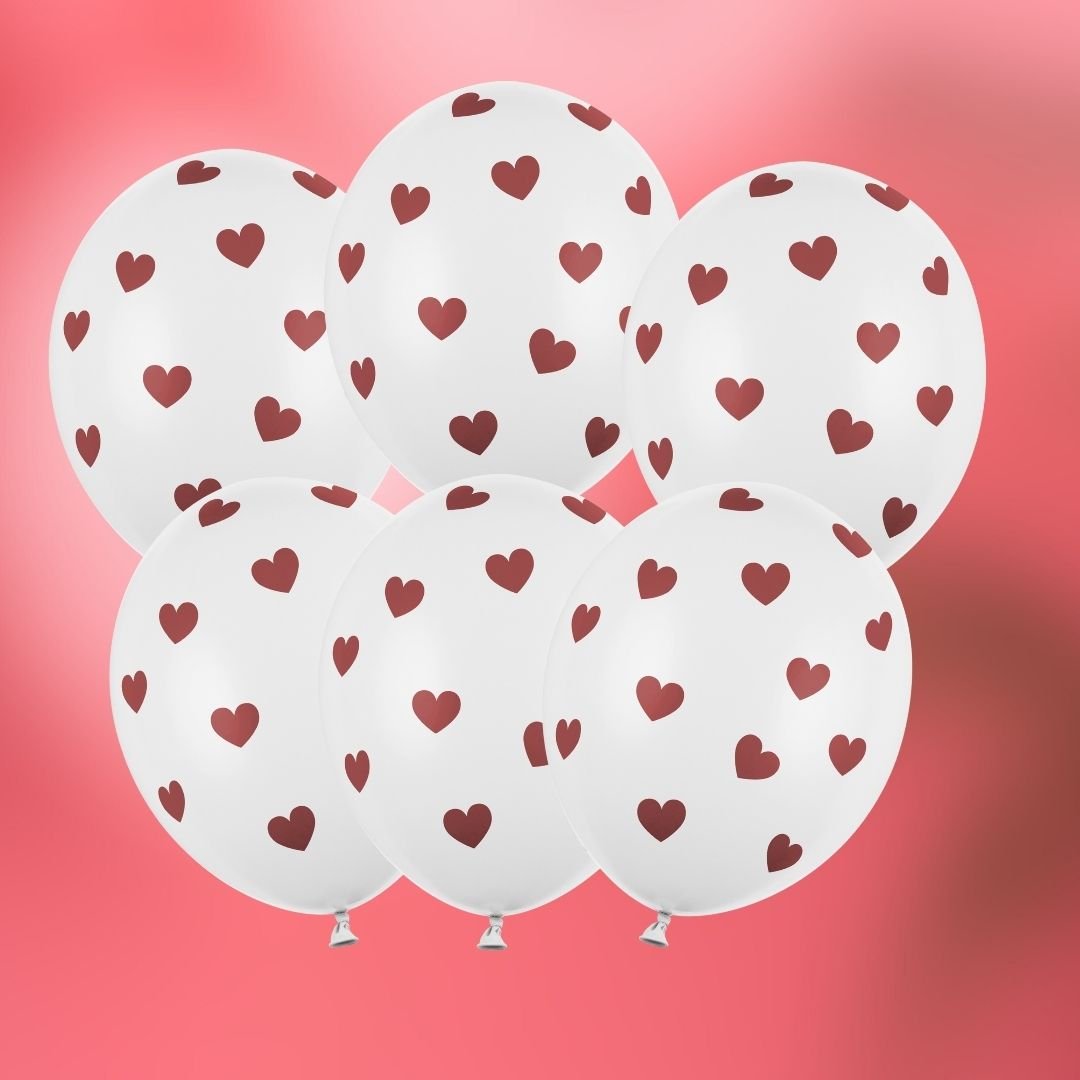 Timeless white heart balloons with red heart prints are a beautiful and sentimental choice for Valentine's Day. The soft Pastel Pure White shade combined with the red heart pattern conveys a feeling of love, importance, and attention.