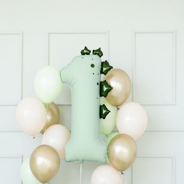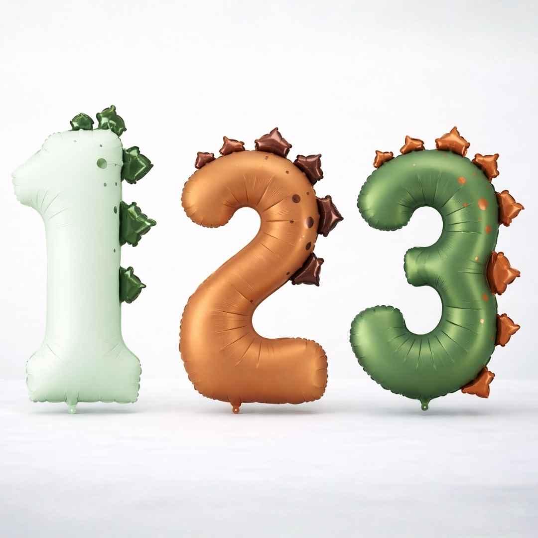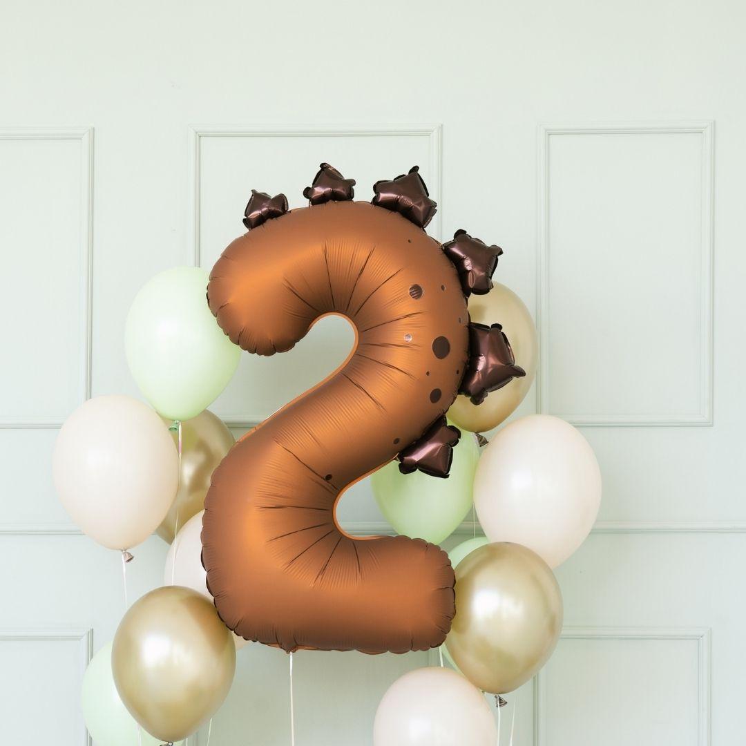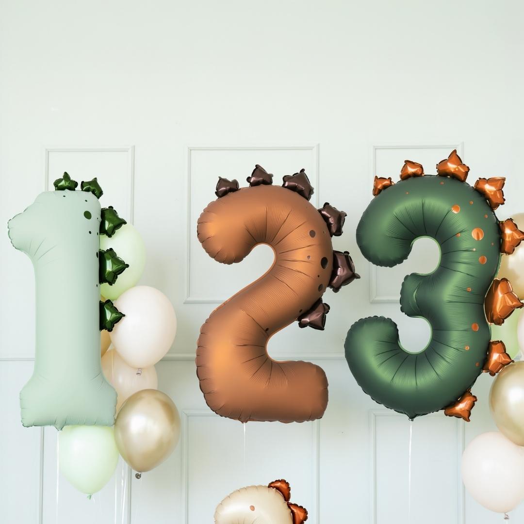 A playful dinosaur-themed number foil balloon adds a cute, playful, and eye-catching detail to any party.