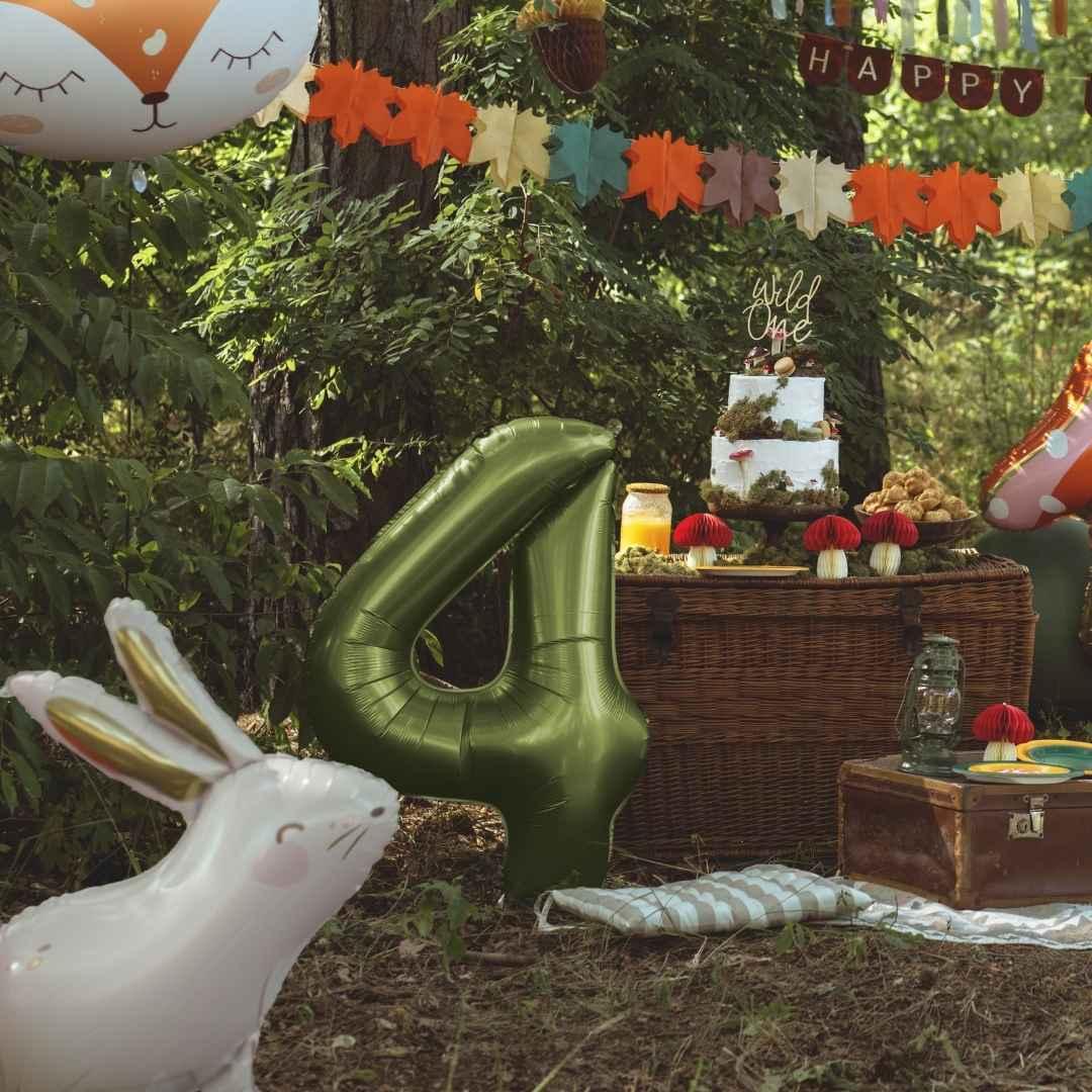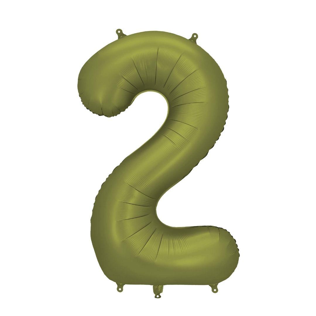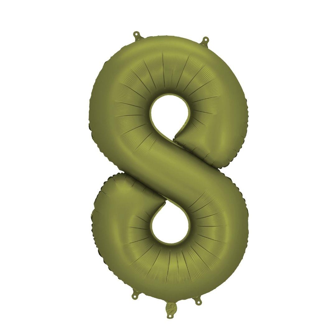The stylish olive green number foil ball is a timeless and understated choice for party decorations.
