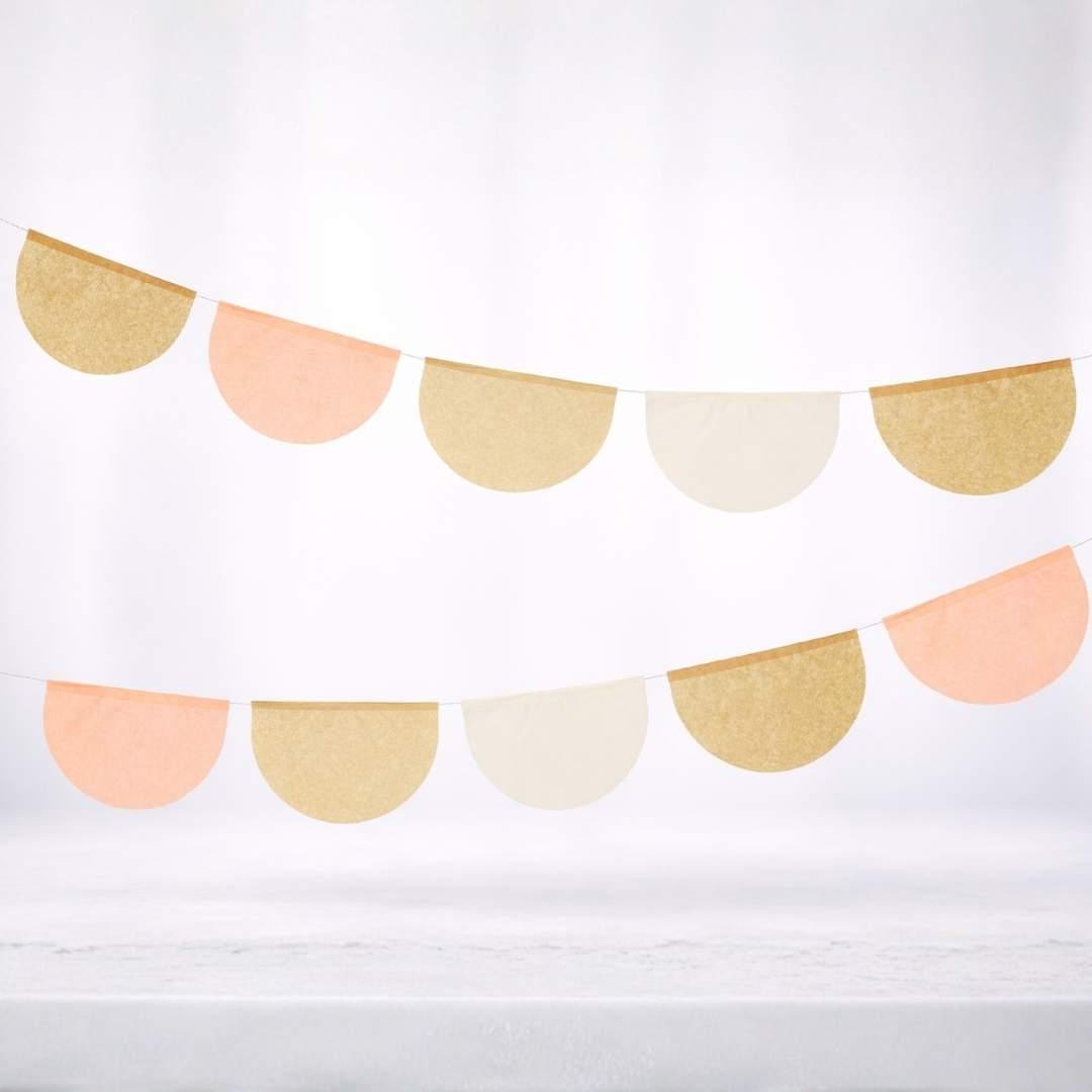 Lightweight and delicate, this pale-colored silk paper garland brings softness and lightness to any festive setting. Available in beige and pale pink shades.